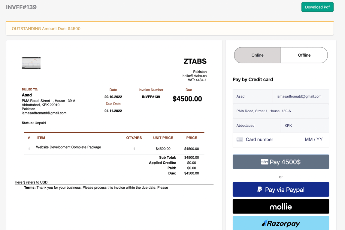 On the public invoice page, your invoice will be shown according to your chosen template instead of default design.